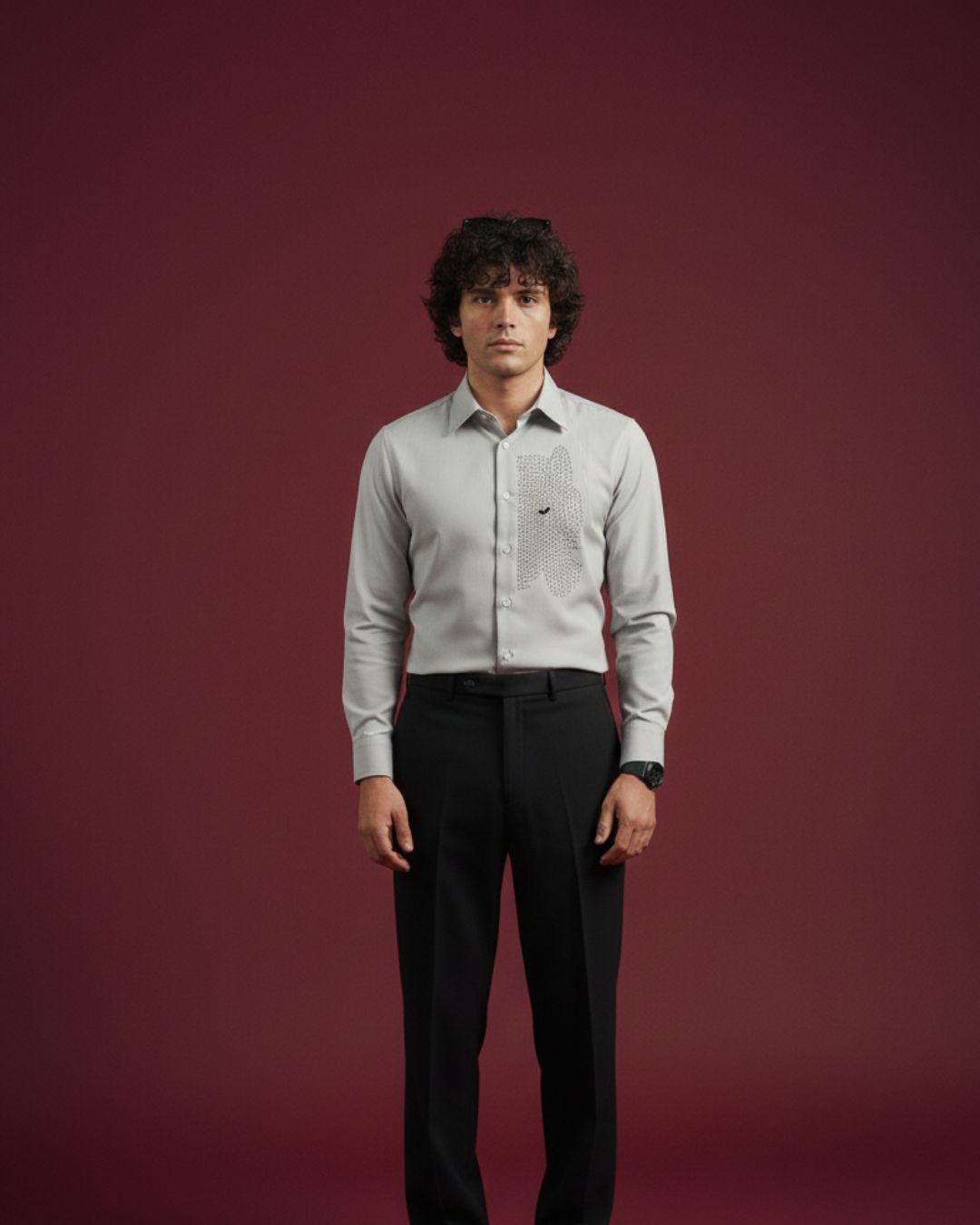 Premium Giza Cotton | Silver Ice Grey | Tigris Crest Embroidery | Lightweight | Breathable | Wrinkle-Resistant | Tailored Elite Fit | Luxury Formal Shirt